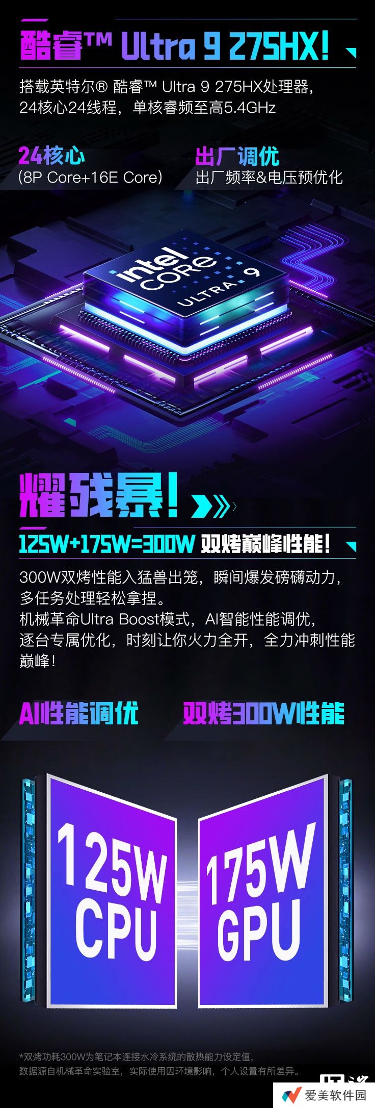 性能方面,该机搭载 24 核心 24 线程英特尔酷睿Ultra 9 275HX处理器,原装配备64GB DDR5 SO-DIMM RAM 和2TB SSD,拥有PCIe 5.0×4 M.2接口。