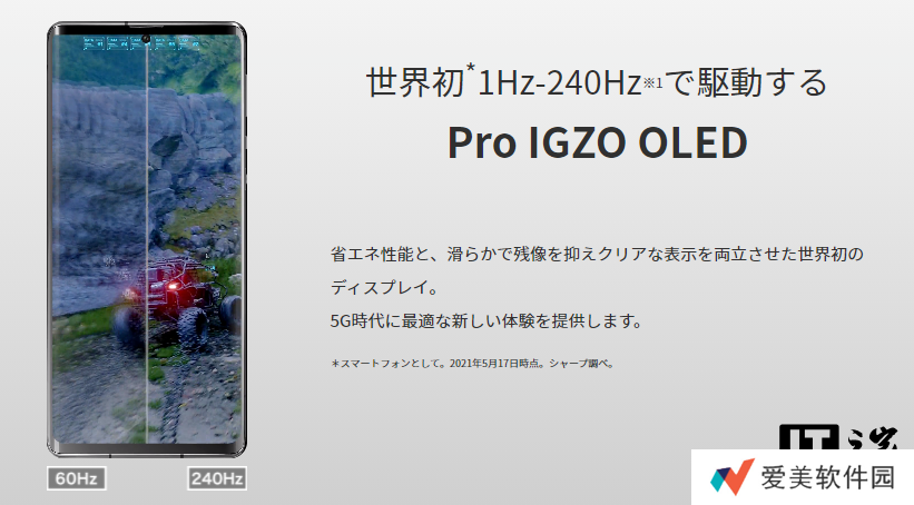 2021 年上市的夏普 AQUOS R6 手机,除了徕卡联名的一英寸大底这一卖点,还搭载了一块支持 1-240Hz 可变刷新率的 Pro IGZO OLED 屏幕。