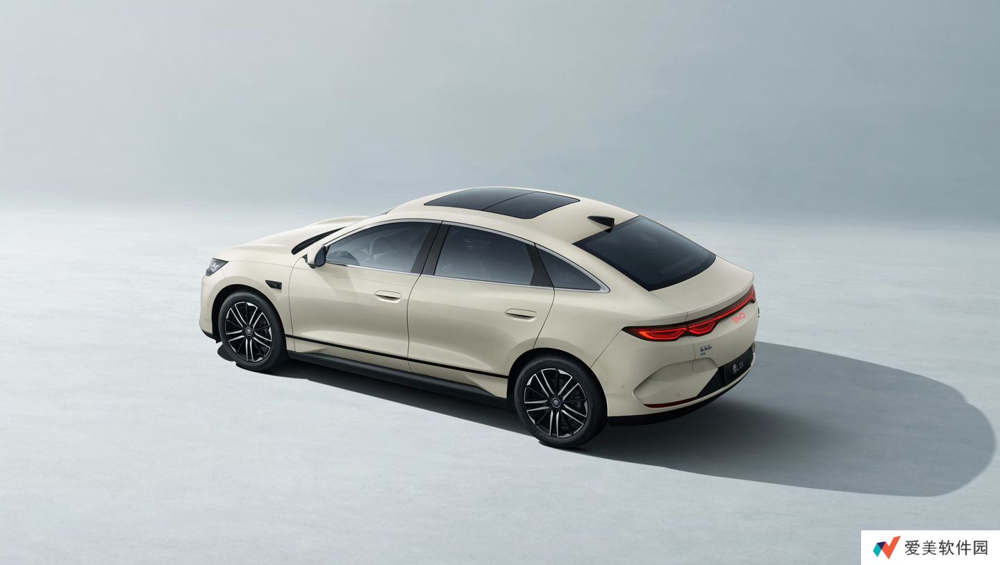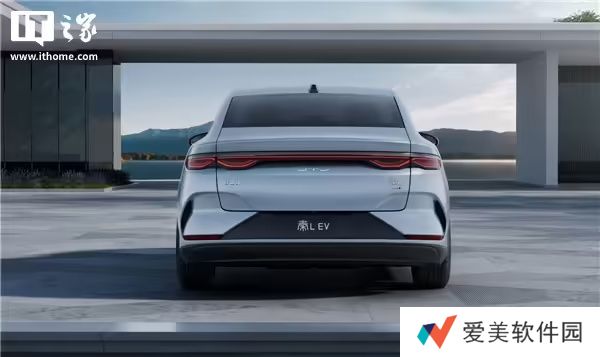 车身侧面,秦 L EV 配备了半隐藏式车门把手和 18 英寸轮圈。车尾部分,采用贯穿式尾灯设计。车身尺寸为 4720/1880/1495mm,轴距达到 2820mm。