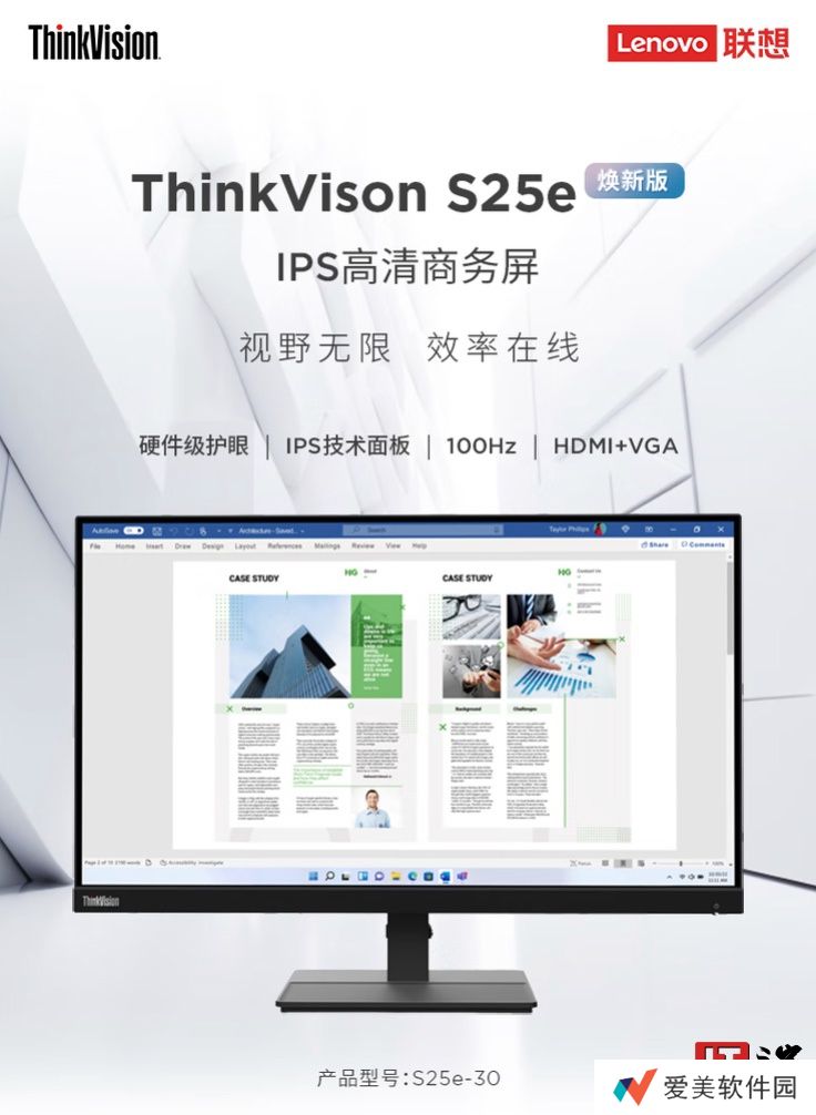 本站 3 月 23 日消息,联想现已在京东上架一款ThinkVision“S25e焕新版”24.5 英寸显示器,这款显示器主打“1080P 100Hz”,定价为579元。