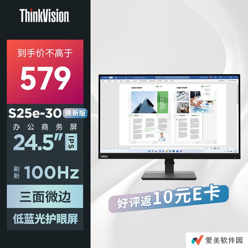 京东联想 ThinkVision“S25e-30 焕新版”24.5 英寸显示器 579 元直达链接