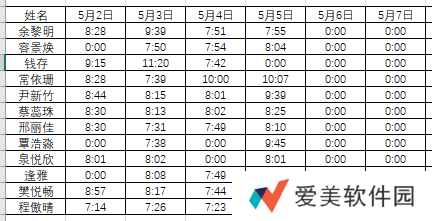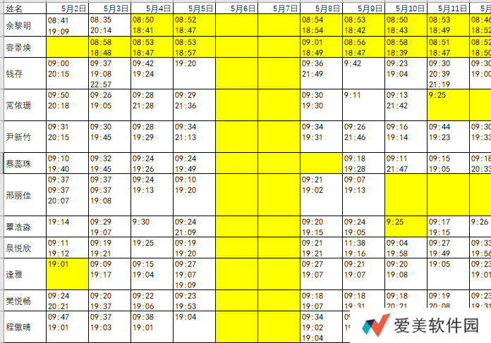 可以看到表中统计的数据还是比较混乱的,有的有文字备注,有的多次打卡,还有缺卡、缺勤,这些都得处理好才行。