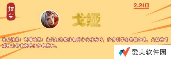 新增了个被动,戈娅往相同方向移动,沙舟持续加速,大幅转弯或者漂移会重新加速。
