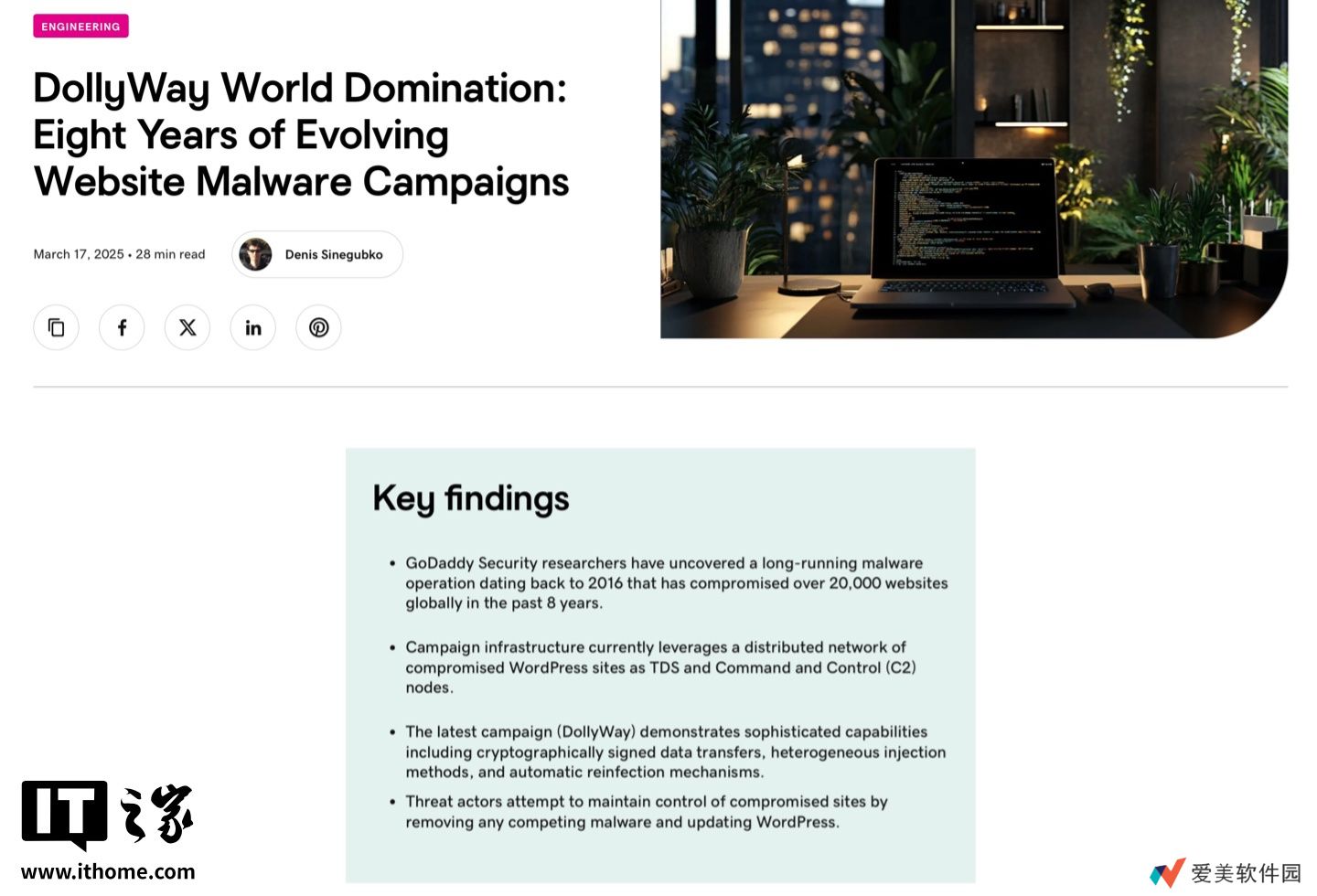 本站 3 月 24 日消息,云服务商 GoDaddy 发布安全报告,透露有黑客组织利用一款名为 DollyWay 的恶意木马劫持WordPress网站,据称目前已有超过2万个网站受到感染。
