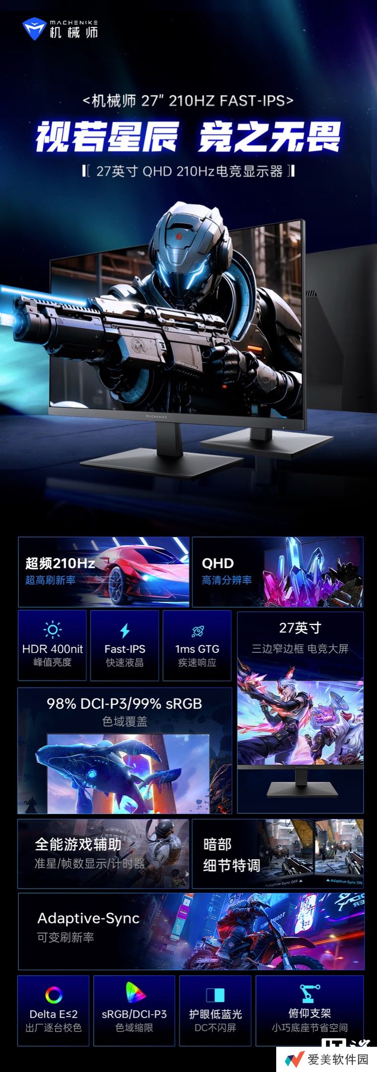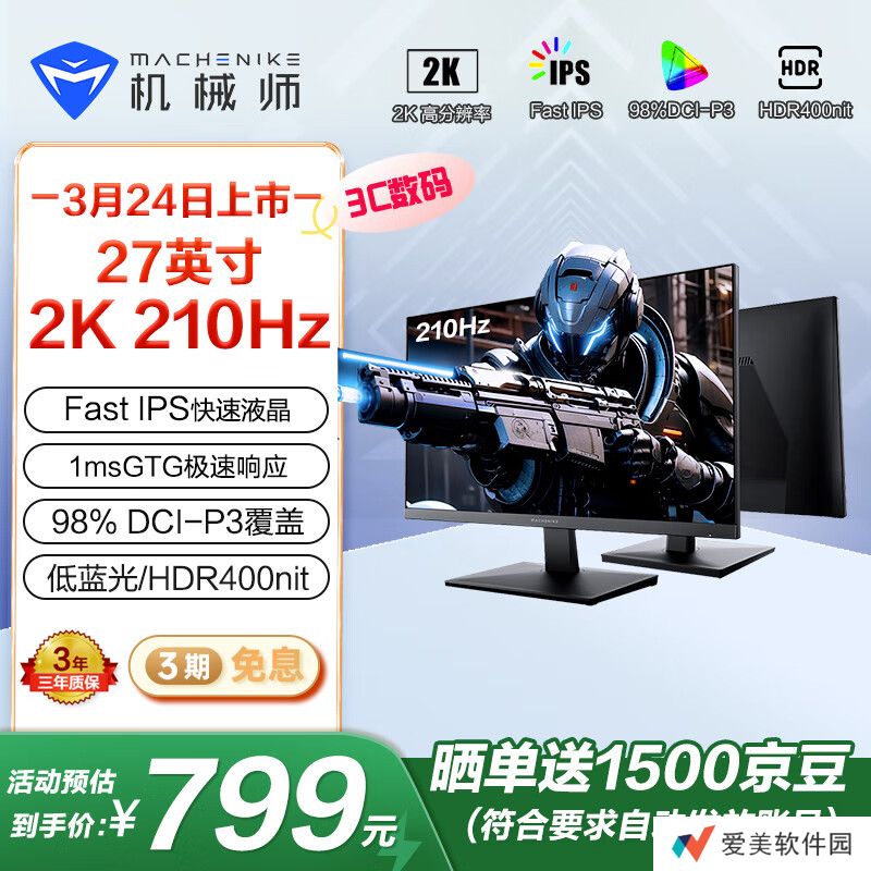 本站 3 月 24 日消息,机械师现已在京东上架一款型号为“MZQ27F210”的 27英寸显示器,这款显示器主打“2K 210Hz”,定价为799元。
