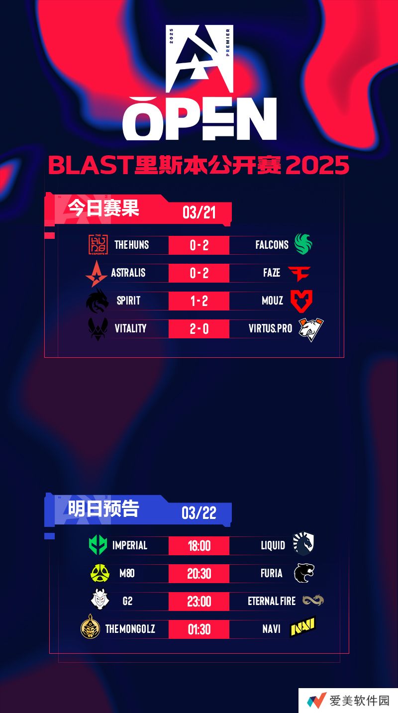 BLAST 里斯本公开赛第三日比赛已经结束。A组败者组首轮中,Falcons、FaZe拿下胜利,而在胜者组半决赛中,MOUZ、Vitality成功赢下比赛,晋级下一阶段。明日将迎来B组败者组首轮及胜者
