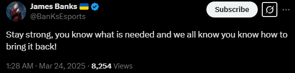BanKs下方留言支持karrigan:“坚强起来!你知道自己需要什么,我们也都清楚你知道该如何强势回归!”