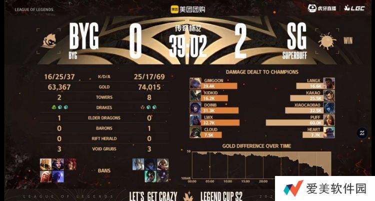 第二局比赛BYG一级设计结果自家下路组掉闪,对线又被压制!kakao赵信两波开送,随后BYG拿下三龙给到一定压力,但是团战端Langx奎桑提顶在前排作用拉满,Puff希维尔连续收割已经无解!Lwx维鲁斯输出有限,同时BYG包括发育良好的GimGoon波比都没人可以抗住希维尔的输出,SG拿下大龙结束比赛,先拿赛点!