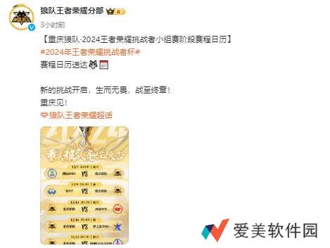 【重庆狼队·2024王者荣耀挑战者小组赛阶段赛程日历】