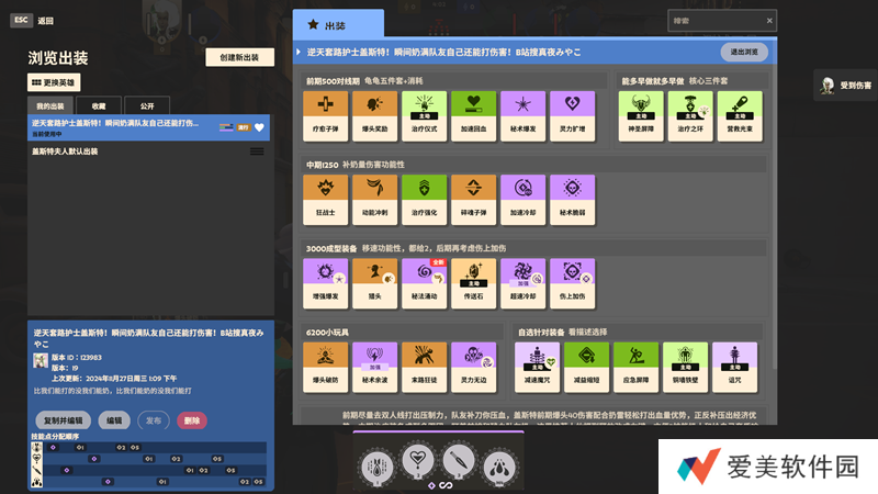 其实这一套就是把原先盖斯特夫人要做的吸血蝗分成六根散布在几件辅助装备上面,这些装备配合2技能奶队友的同时也能增强自身的生存能力,核心依旧是混伤的一个打法,自身伤害不低的同时也有一定的团队作用,不过盖斯特夫人注定是一个比较吃枪法的角色,适合打法团队的枪男选手(这套平a和技能输出都不低)。
