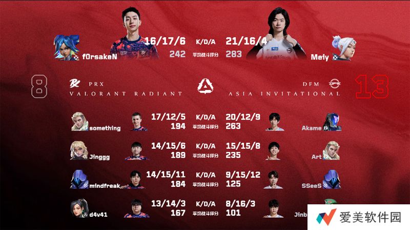 第二张地图亚海悬城,DFM 13:8 PRX,MVP给到Meiy。
