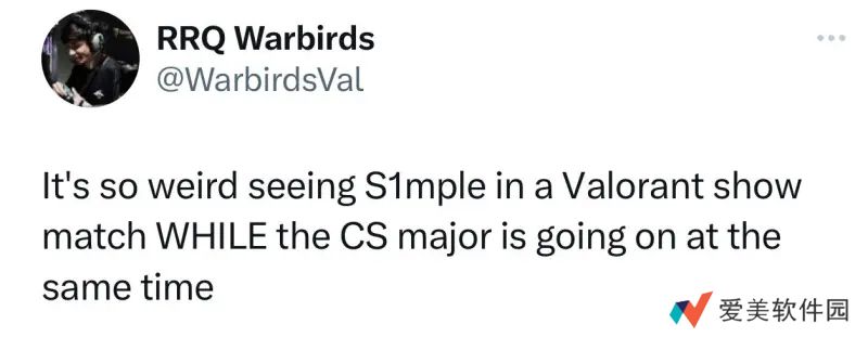 VCT 太平洋联赛RRQ战队的主教练Warbirds发文:CS major大赛在打的同时,s1mple却在参加无畏契约的活动,这感觉太奇怪了。
