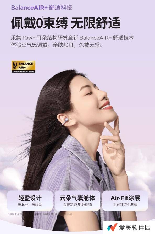 万魔S20耳夹式蓝牙耳机在设计上追求极致的轻盈与时尚,提供了银河紫、曜石黑、星海蓝三种时尚配色供消费者选择。耳机表面采用了独特的Air・Fit涂层,不仅触感舒适,更宣称能有效避免油腻感,让佩戴体验更加清爽。