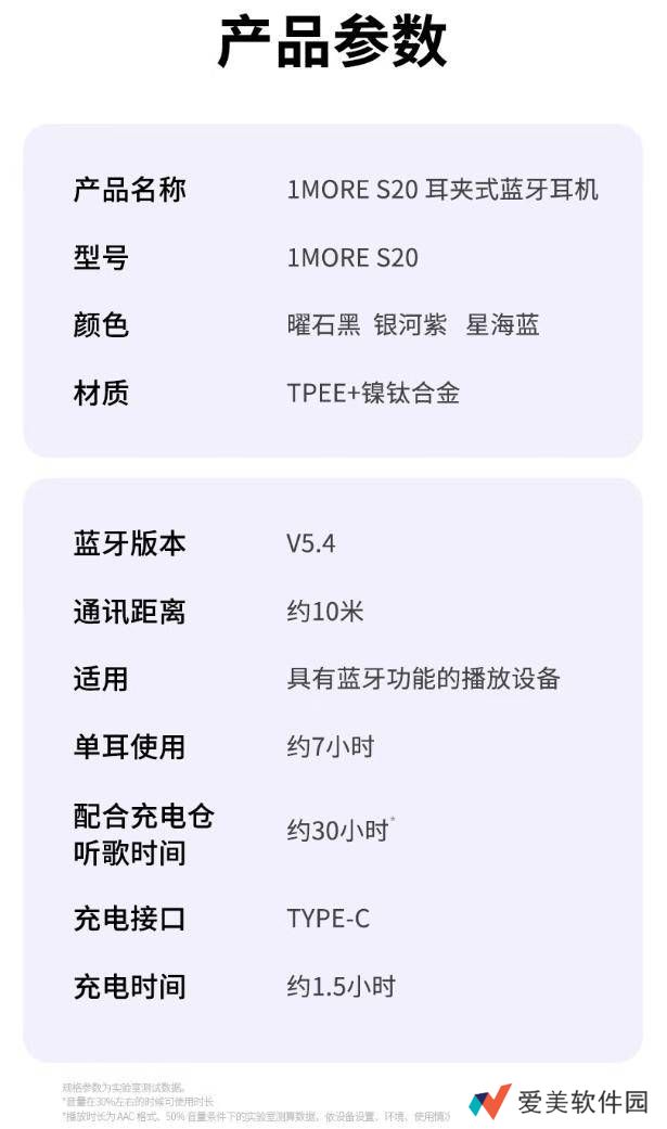 以下是万魔S20耳夹式蓝牙耳机的详细产品参数,供消费者参考: