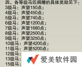 1、玩家可首先通过贡献任意马匹来提高声望至【友好】级别,随后必须捐献相应等级的马匹以进一步增加声望。
