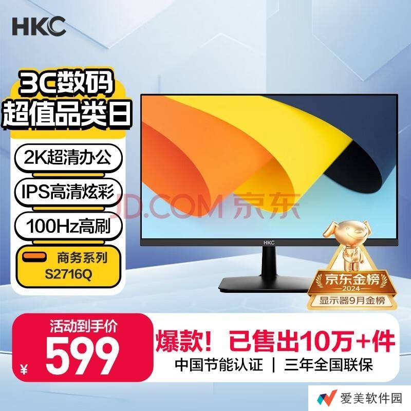 HKC近期发布了一款全新的27英寸显示器——S2716Q,这款显示器以“2K 100Hz”的规格吸引了众多消费者的目光,而其价格依旧亲民,保持在599元。