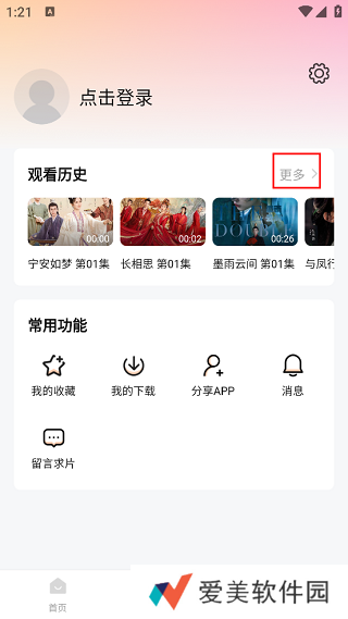 2、切换到个人中心界面之后,可以看到上方中的“观看历史”一栏,点击右侧的“更多”。