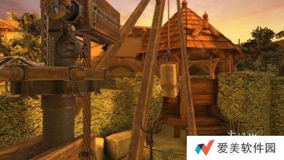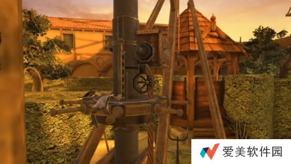 20、回到过去,进入右侧房间,将梯子转到左侧,点击爬上梯子,得到把手,将把手安装在轮子附近,旋转把手降低梯子。