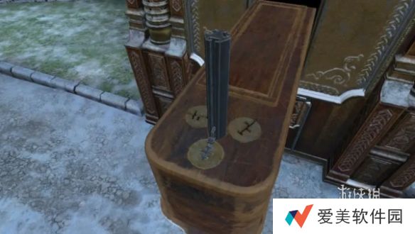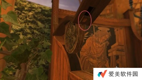 10、再次回到过去,把轮盘放置在铁门中,根据铁门上的空心圆环调整轮盘,记住右侧门上眼睛的方向。