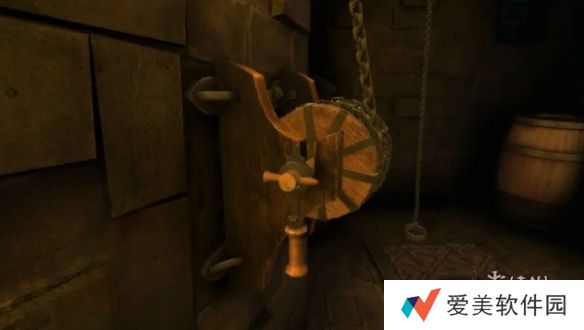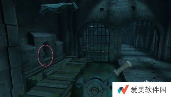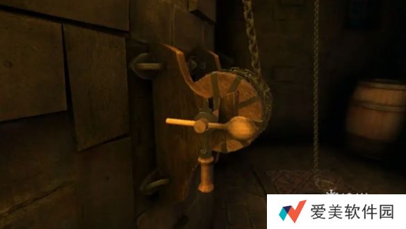 5、回到初始地点会得到勺子,将勺子放入代替铆钉,点击拉动摇把,进入地下室。