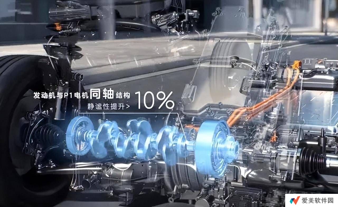 在国内混动技术领域,各大品牌百花齐放,技术路线各异。荣威DMH则采用了动力性与经济性并重的P1+P3双电机构型,实现了更高的机械传动效率和更快的动力响应,同时决策过程也更为高效。其发动机与P1电机采用行业领先的同轴结构,不仅显著提升了传动效率,降低了能量损耗,而且在NVH表现上相比平行轴产品提升了10%以上。