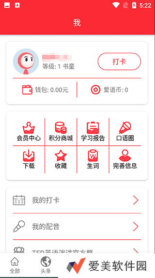 1、打开ted英语演讲官方app,点击“我的”,在这个界面找到“会员中心”,点击进入;