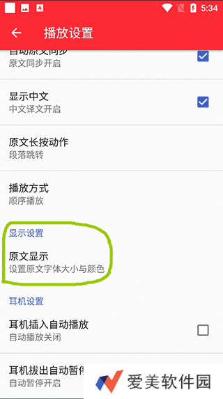 3、在这里找到“显示设置”的“原文显示”,点击进入;