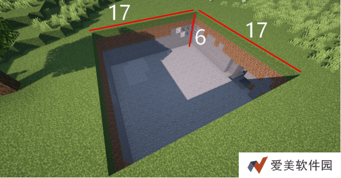 我们首先找到一块平地,然后挖一个17x17x6的坑
