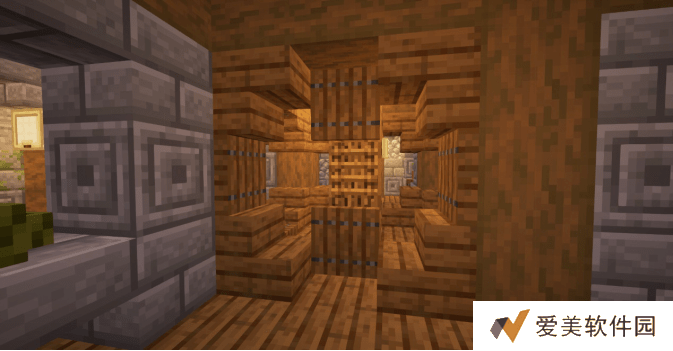 分别使用云杉木楼梯、云杉木活板门搭建出图中的门,同样,这个门有关闭状态的~