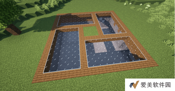 这一层的空余部分用玻璃填满,中间的区域用草方块放置,这样就有四块玻璃
