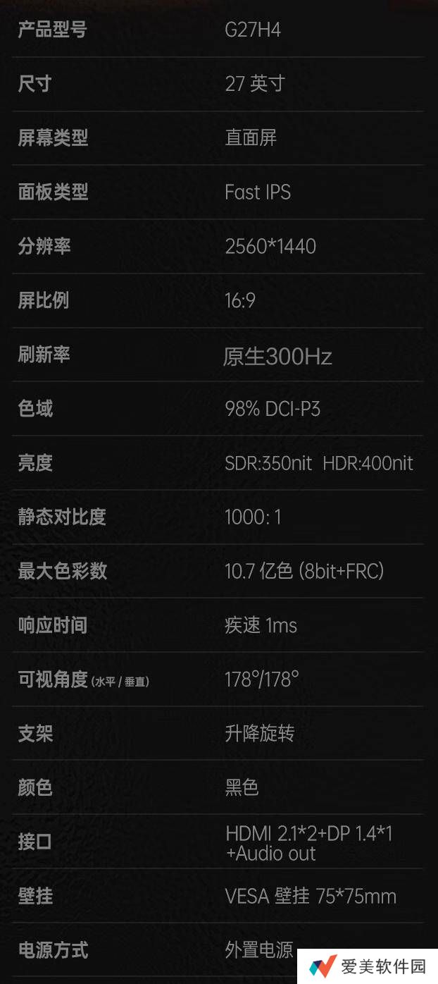 以下是G27H4显示器的详细参数信息,供用户参考: