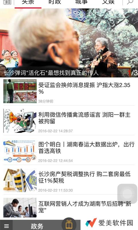 【新闻】是“掌上长沙”的主要功能,设置头条、时政、城事、文娱、区县和微报纸等形式多样的内容频道,通过文字、图片、视频、音频等多种形式,实施新闻资讯24小时滚动发布。