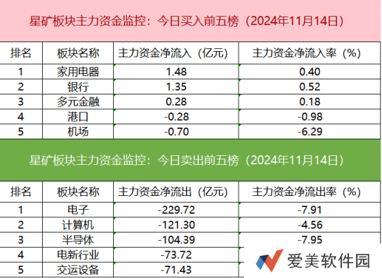 然而,在资金流出方面,电子板块遭遇较大压力,主力资金净流出金额超过两百亿,显示出该板块短期内可能面临一定的调整压力。