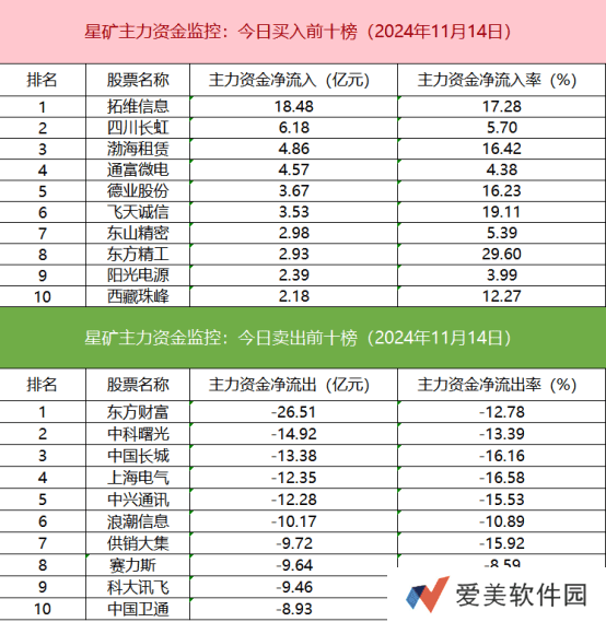 个股资金监控数据进一步揭示,拓维信息成为资金净流入最多的个股,显示出市场对该股的强烈看好。而东方财富则不幸成为资金净流出最多的个股,可能面临一定的抛压。
