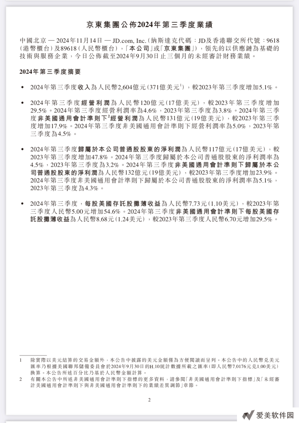 京东集团在2024年第三季度财报中呈现出稳健的业绩表现,收入与利润均实现增长。