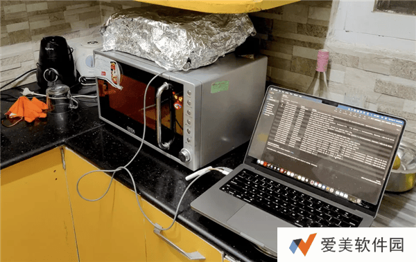 为了彻底阻断所有2.4GHz的WiFi信号,他甚至在微波炉顶部运行iPad,利用微波炉产生的电磁干扰增强屏蔽效果。在这一过程中,Jayasimha还通过MacBook运行脚本,使iPad在特定时间后自动开启WiFi搜索,从而成功欺骗系统定位。