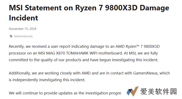 微星公司对此事迅速作出反应,发布官方声明表示已与AMD公司紧密合作,并正积极联系涉事用户及各大媒体,以全面了解事故原因。声明还承诺将随时向公众通报调查的最新进展。