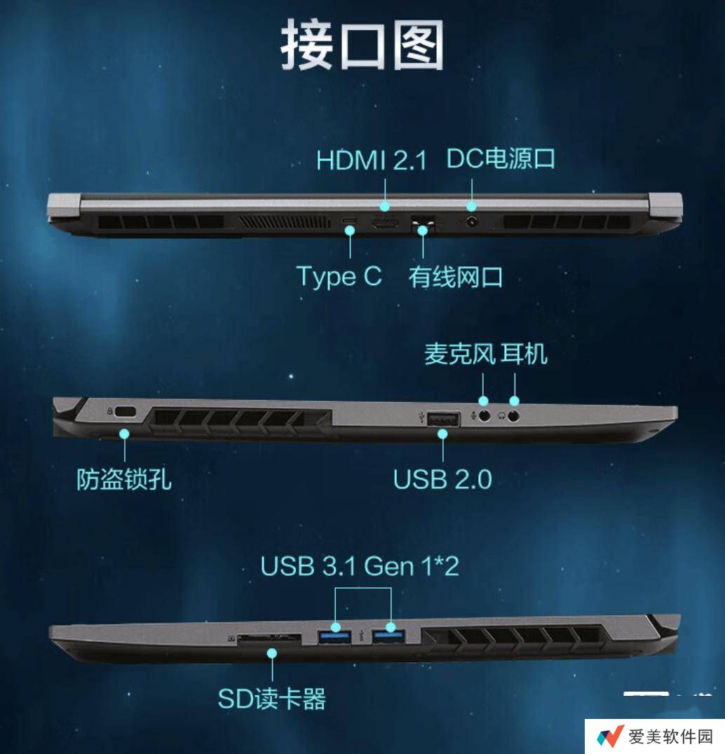 新款极光15还具备丰富的接口配置。机身后置1个USB-C接口、1个HDMI 2.1接口和1个RJ45网络接口,方便连接各种外设和网络设备。机身左侧则配备了1个USB-A 2.0接口和2个3.5mm音频接口,满足用户的多样化需求。右侧则提供了2个高速的USB-A 3.1 Gen 2接口,以及1个SD卡读卡器,方便数据传输和存储。