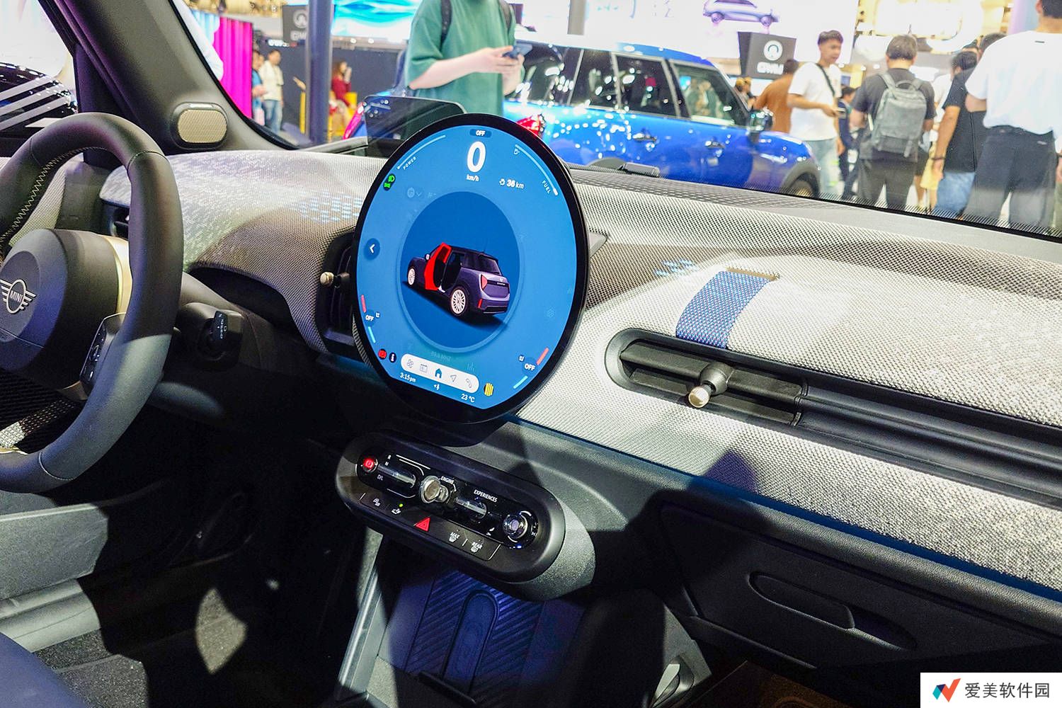 内饰方面,全新MINI COOPER燃油版展现了全新的设计风格。车内最为抢眼的是一块直径为240毫米的无边框圆形OLED显示屏,它集成了娱乐、空调控制和车辆设置等多项功能,为驾驶者提供了便捷的信息交互体验。