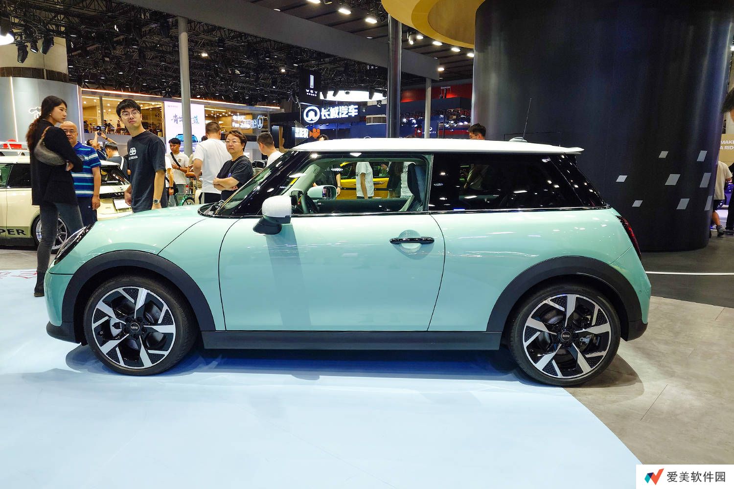 在车侧部分,MINI COOPER依然保持了其低矮且紧凑的车身造型。五门版车型在尺寸上有所调整,相较于三门版在长度和轴距上均有所增加,提供了更为宽敞的车内空间。