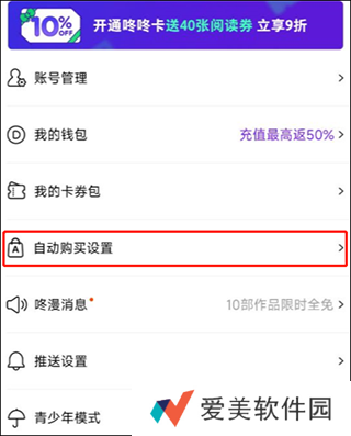 2、选择屏幕【自动购买设置】,点击进入即可。